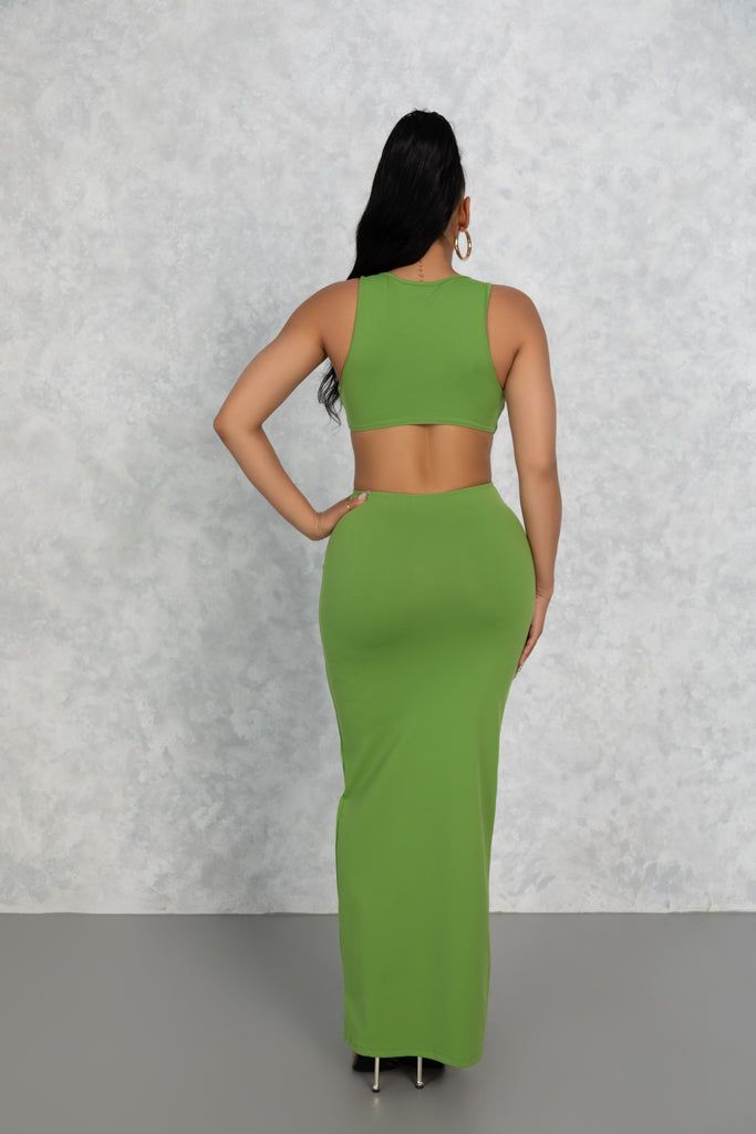 Our Anillo Dress is a must have for ones Kloset. Its flattering features include a ring in the middle of the dress with cut outs each side.This helps accentuate the hips for an alluring appeal. Also available in Burnt Orange, and Yellow.